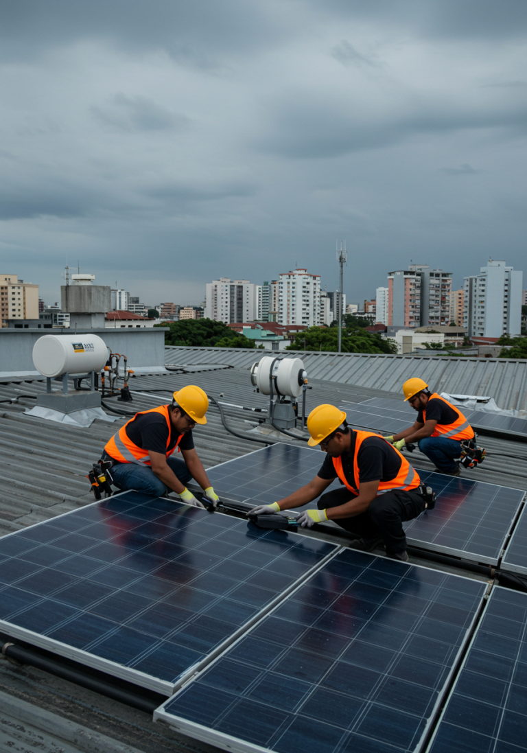 Entregamos exatamente o que sua empresa precisa para uma solução completa, econômica e funcional. Serviços de Instalação de Aquecedor solar, Sistema fotovoltaico, Ar-Condicionado e PMOC.